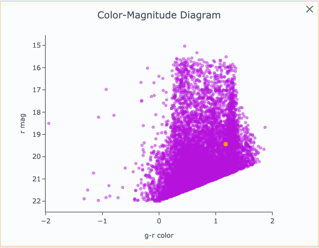 In this example, for a color-magnitude diagram, set the X to g_cModelMag - r_cModelMag